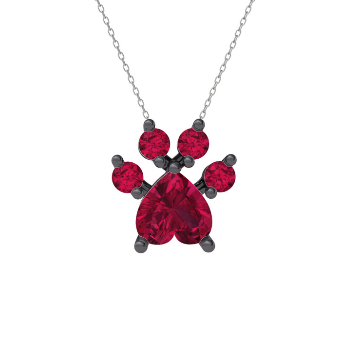 Rodolit garnet 925 ayar siyah rodyum kaplama gümüş kolye (40 cm beyaz altın rolo zincir)