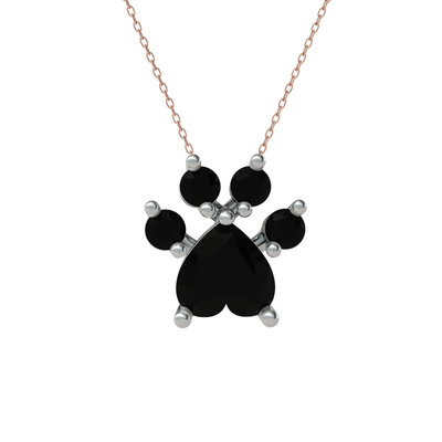 Siyah zirkon 8 ayar beyaz altın kolye (40 cm rose altın rolo zincir)