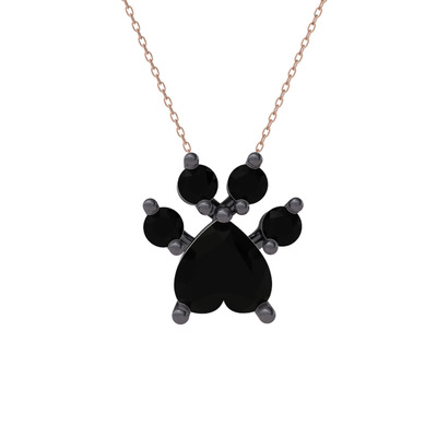Siyah zirkon 925 ayar siyah rodyum kaplama gümüş kolye (40 cm rose altın rolo zincir)