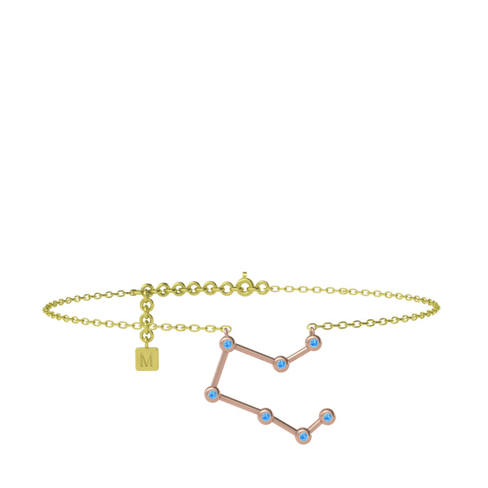 Akuamarin 18 ayar rose altın bilezik (20 cm altın rolo zincir)