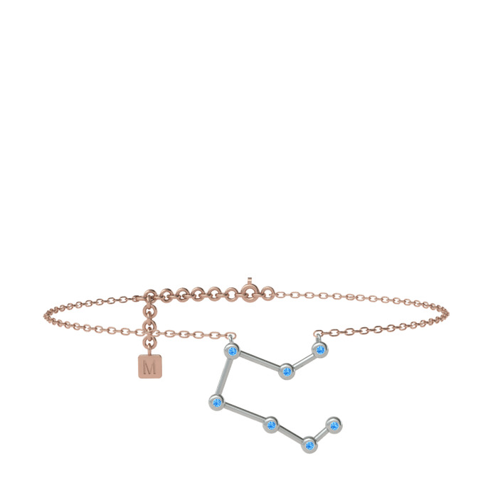 Akuamarin 925 ayar gümüş bilezik (20 cm rose altın rolo zincir)