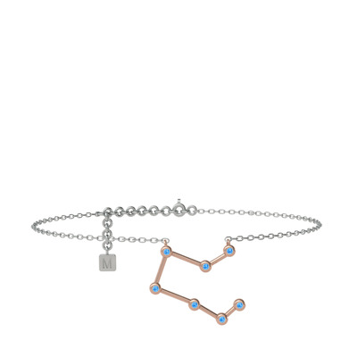 Akuamarin 925 ayar rose altın kaplama gümüş bilezik (20 cm beyaz altın rolo zincir)