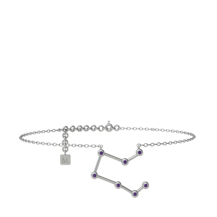 Ametist 925 ayar gümüş bilezik (20 cm beyaz altın rolo zincir)