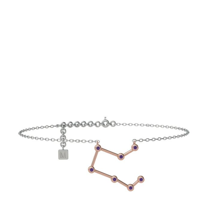 Ametist 925 ayar rose altın kaplama gümüş bilezik (20 cm beyaz altın rolo zincir)