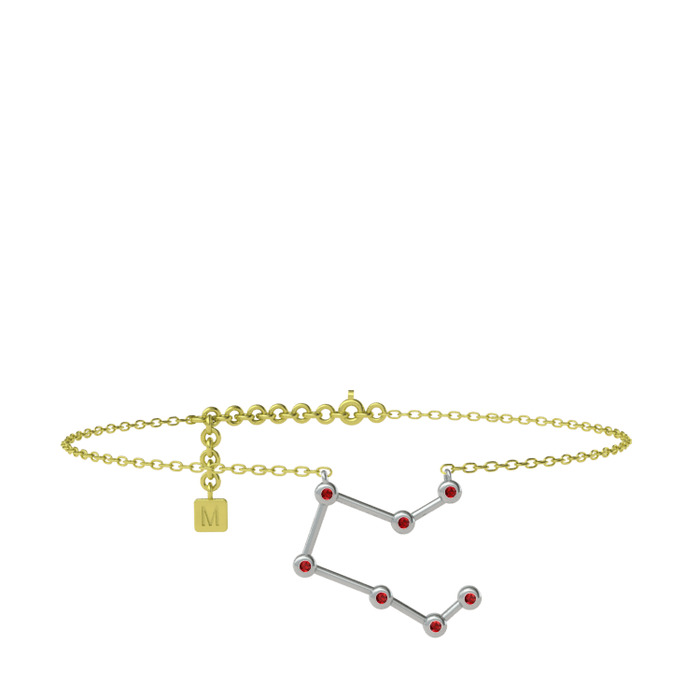 Garnet 18 ayar beyaz altın bilezik (20 cm gümüş rolo zincir)