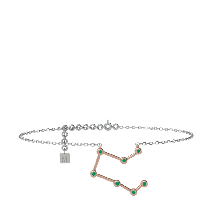 Kök zümrüt 8 ayar rose altın bilezik (20 cm beyaz altın rolo zincir)