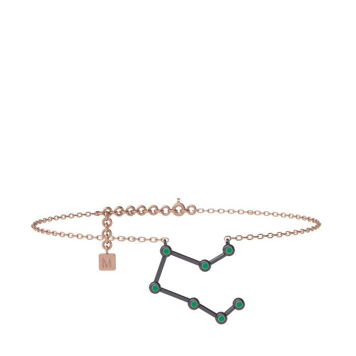 Kök zümrüt 925 ayar siyah rodyum kaplama gümüş bilezik (20 cm rose altın rolo zincir)