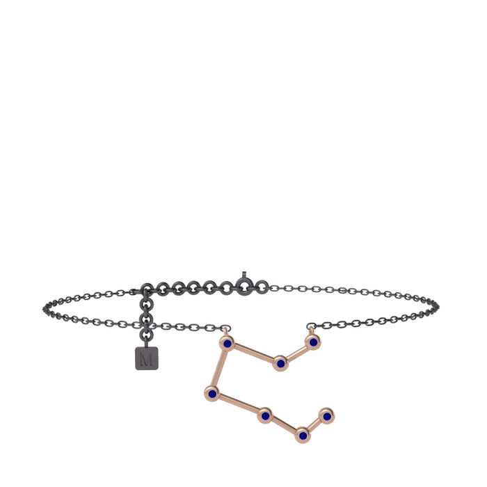 Lab safir 14 ayar rose altın bilezik (20 cm gümüş rolo zincir)