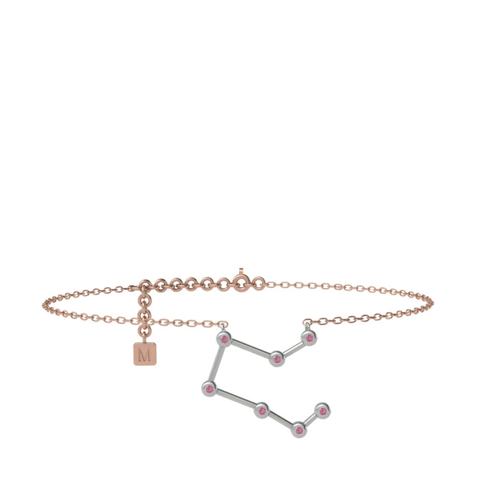Pembe kuvars 18 ayar beyaz altın bilezik (20 cm rose altın rolo zincir)