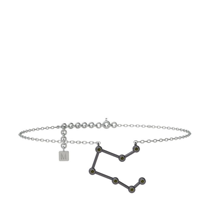 Peridot 925 ayar siyah rodyum kaplama gümüş bilezik (20 cm beyaz altın rolo zincir)