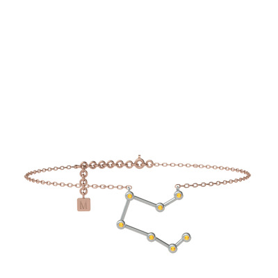 Sitrin 14 ayar beyaz altın bilezik (20 cm gümüş rolo zincir)
