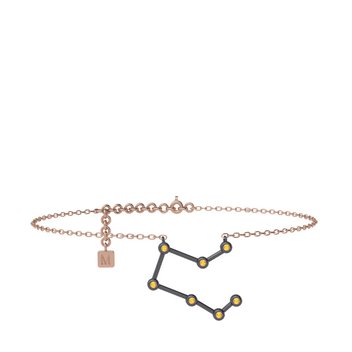 Sitrin 925 ayar siyah rodyum kaplama gümüş bilezik (20 cm rose altın rolo zincir)