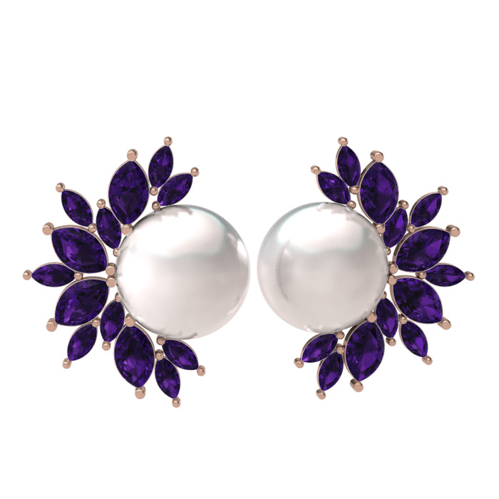 Inci ve ametist 925 ayar rose altın kaplama gümüş küpe