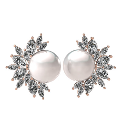 Inci ve beyaz zirkon 18 ayar rose altın küpe