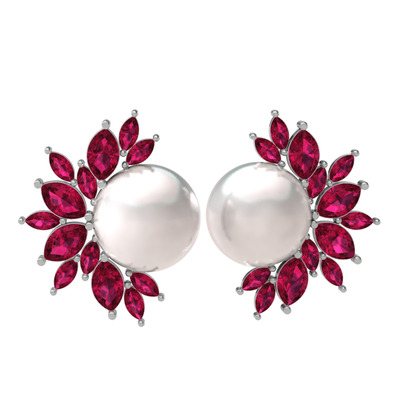 Inci ve rodolit garnet 925 ayar gümüş küpe