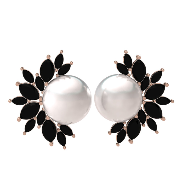 Inci ve siyah zirkon 925 ayar rose altın kaplama gümüş küpe
