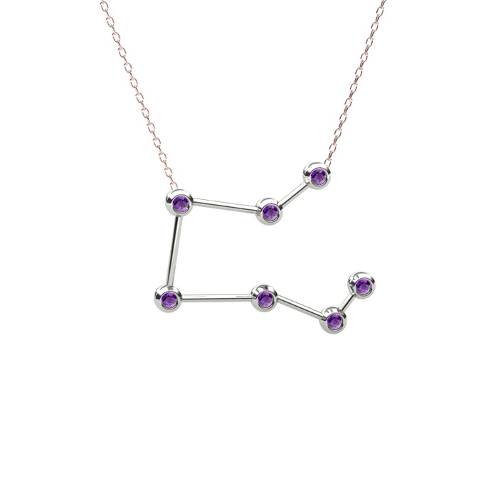 Ametist 8 ayar beyaz altın kolye (40 cm rose altın rolo zincir)