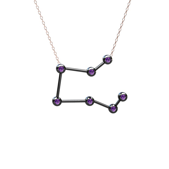 Ametist 925 ayar siyah rodyum kaplama gümüş kolye (40 cm rose altın rolo zincir)
