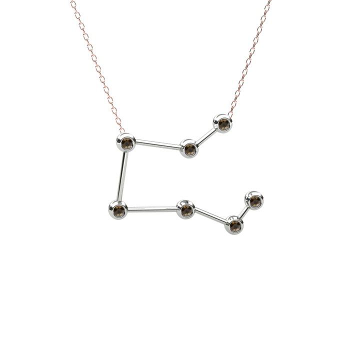 Dumanlı kuvars 925 ayar gümüş kolye (40 cm rose altın rolo zincir)