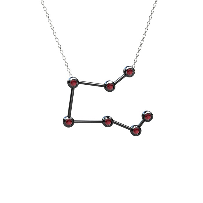 Kök yakut 925 ayar siyah rodyum kaplama gümüş kolye (40 cm beyaz altın rolo zincir)
