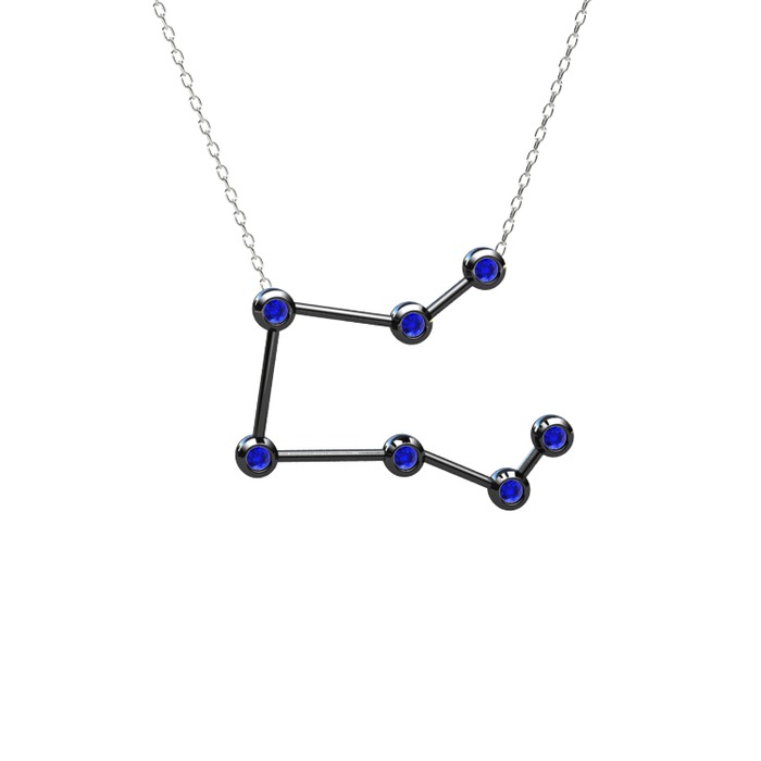 Lab safir 925 ayar siyah rodyum kaplama gümüş kolye (40 cm beyaz altın rolo zincir)