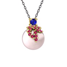 Pembe inci, siyah inci ve garnet 14 ayar altın kolye