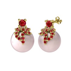 Pembe inci ve pembe kuvars 14 ayar altın küpe