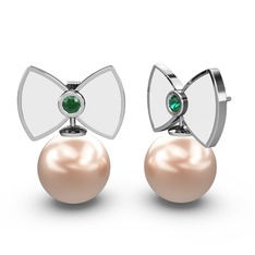 Pembe inci, kök zümrüt ve rodolit garnet 8 ayar beyaz altın küpe