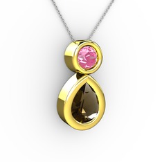 Akuamarin ve pembe kuvars 18 ayar rose altın kolye (40 cm altın rolo zincir)