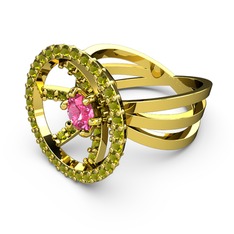 Peridot ve pembe kuvars 18 ayar altın yüzük