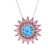 Akuamarin ve pembe kuvars 8 ayar altın kolye (40 cm altın rolo zincir)