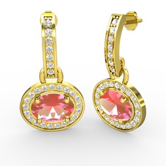 Pembe inci ve pembe kuvars 18 ayar altın küpe (Beyaz mineli)
