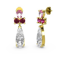 Pembe kuvars, garnet ve beyaz zirkon 14 ayar altın küpe