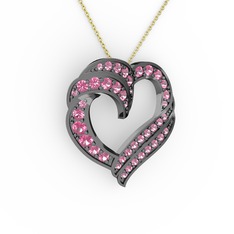 Pembe kuvars 925 ayar siyah rodyum kaplama gümüş kolye (40 cm altın rolo zincir)