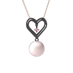 Pembe kuvars 925 ayar siyah rodyum kaplama gümüş kolye (40 cm beyaz altın rolo zincir)
