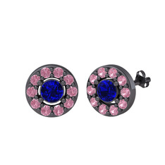 Lab safir ve pembe kuvars 925 ayar siyah rodyum kaplama gümüş küpe