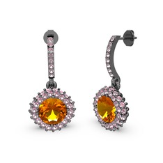 Lab safir ve pembe kuvars 925 ayar siyah rodyum kaplama gümüş küpe