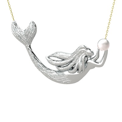 Pequod Deniz Kızı Kolye - Inci 14 ayar beyaz altın kolye (40 cm gümüş rolo zincir)
