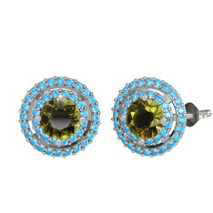 Peridot ve akuamarin 18 ayar beyaz altın küpe