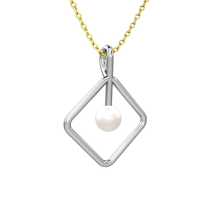 Inci 8 ayar beyaz altın kolye (40 cm gümüş rolo zincir)