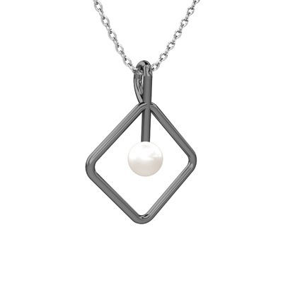Inci 925 ayar siyah rodyum kaplama gümüş kolye (40 cm beyaz altın rolo zincir)