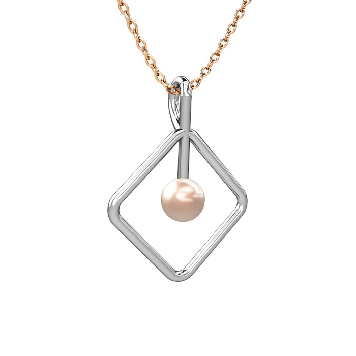 Pembe inci 18 ayar beyaz altın kolye (40 cm rose altın rolo zincir)