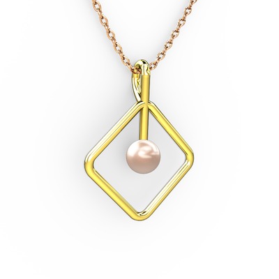 Pembe inci 925 ayar altın kaplama gümüş kolye (40 cm rose altın rolo zincir)