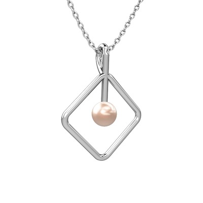 Pembe inci 925 ayar gümüş kolye (40 cm beyaz altın rolo zincir)