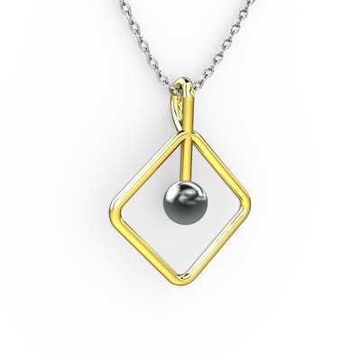 Siyah inci 14 ayar altın kolye (40 cm gümüş rolo zincir)