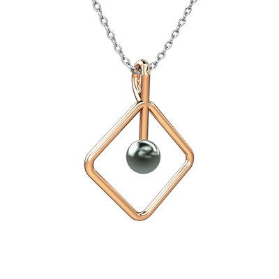Siyah inci 14 ayar rose altın kolye (40 cm beyaz altın rolo zincir)