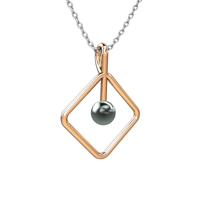 Siyah inci 18 ayar rose altın kolye (40 cm beyaz altın rolo zincir)