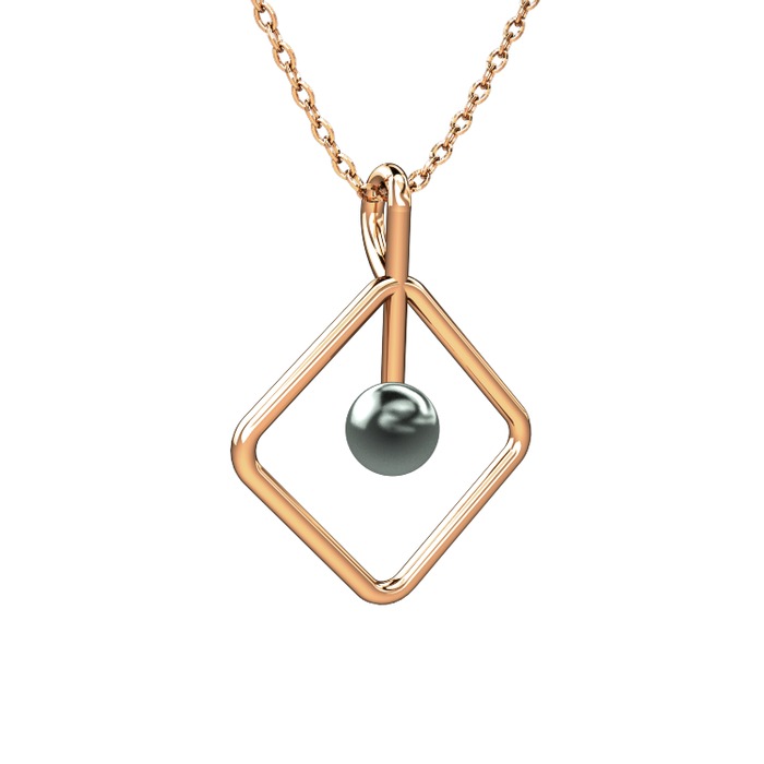 Siyah inci 18 ayar rose altın kolye (40 cm rose altın rolo zincir)
