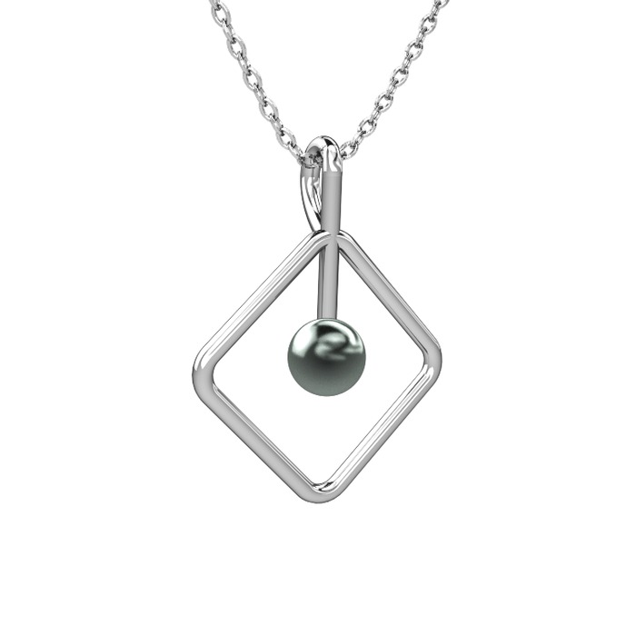 Siyah inci 8 ayar beyaz altın kolye (40 cm beyaz altın rolo zincir)