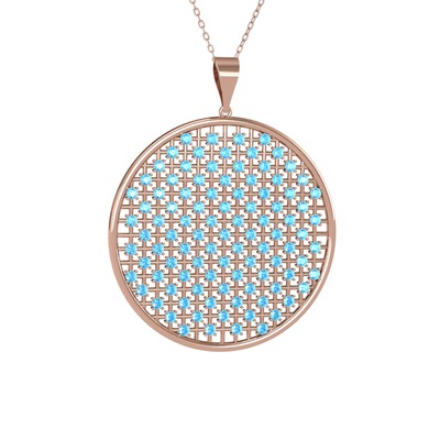 Akuamarin 14 ayar rose altın kolye (40 cm gümüş rolo zincir)